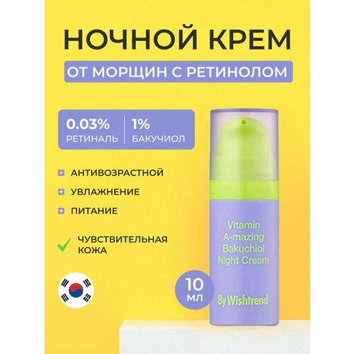 НАЙТИ ВЫГОДНЕЕ - Ночной крем от морщин с ретинолом и бакучиолом BY WISHTREND Vitamin A-mazing Bakuchiol Night Cream, 10 мл