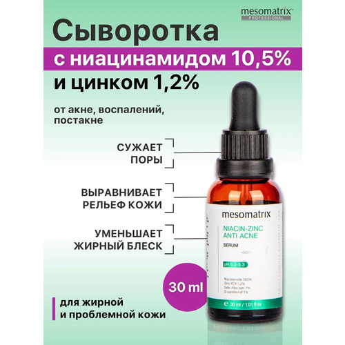 НАЙТИ ВЫГОДНЕЕ - Сыворотка с ниацинамидом и цинком NIACIN-ZINC anti acne, для жирной проблемной кожи, от акне, Mesomatrix, 30 мл