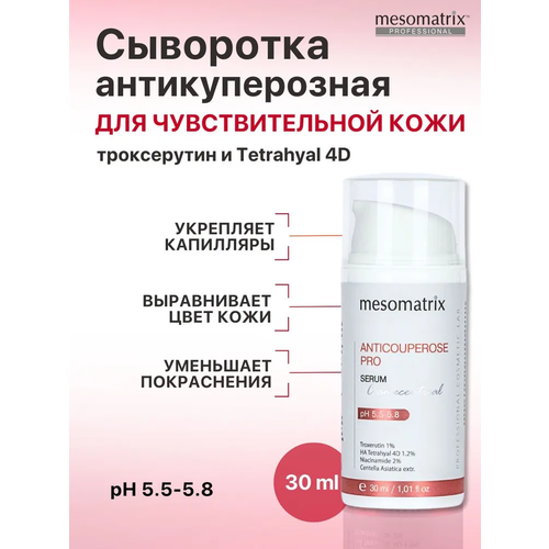 НАЙТИ ВЫГОДНЕЕ - Антикуперозная сыворотка ANTICUPEROSE PRO, для чувствительной кожи лица, от купероза, против отеков, 30 мл, Mesomatrix