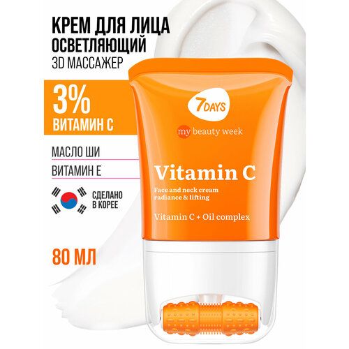 НАЙТИ ВЫГОДНЕЕ - 7DAYS Крем для лица, массажер для лица 2в1 80мл VITAMIN C MY BEAUTY WEEK