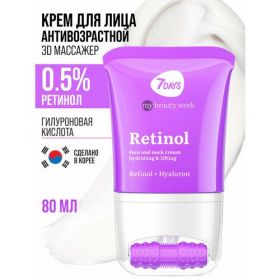 Крем для лица anti age с ретинолом 7days My Beauty Week Retinol 0,5% 80 ml. Антивозрастной уход, отшелушивание, увлажнение, омоложение и массаж лица. Инновационное средство для ухода: Массажер для лица и Крем для массажа лица, шеи и зоны декольте 2В1.