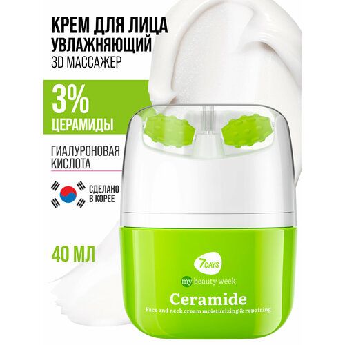 Крем для лица увлажняющий 7days My Beauty Week Ceramide 3% 40ml. Восстановление кожного барьера, увлажнение, питание, регенерация и массаж лица. Инновационное средство для ухода: Массажер для лица и Крем для массажа лица, шеи и зоны декольте 2В1.