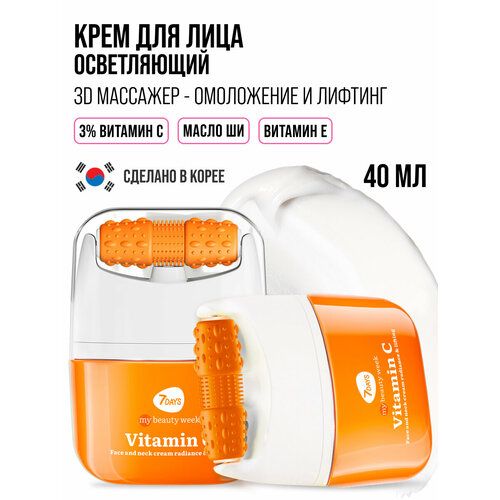 НАЙТИ ВЫГОДНЕЕ - 7DAYS Крем для лица, массажер для лица 2в1 40мл, VITAMIN C MY BEAUTY WEEK