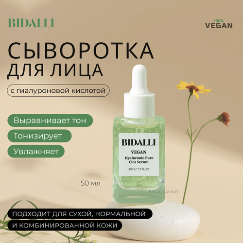 НАЙТИ ВЫГОДНЕЕ - BIDALLI Восстанавливающая сыворотка с гиалуроновой кислотой Vegan Hyaluronic Pure Cica Serum 50мл