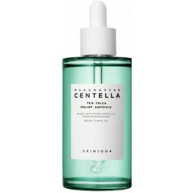 Ампула SKIN1004 Madagascar Centella Tea-Trica Relief Ampoule — SOS-средство от прыщей и воспалений, которое помогает в борьбе с акне, смягчает кожу, уменьшает покраснение и раздражение, отлично ухаживает за проблемной кожей. Продукт нормализует чрезмерную выработку кожного сала, устраняет жирный блеск и предотвращает появление чёрных точек. Формула является некомедогенной и гипоаллергенной, а это значит, что ампулу можно использовать для чувствительной кожи и кожи с акне. Средство освежает и успокаивает, оказывает подавляет процесс воспаления, при этом не пересушивает кожу. Лёгкая водянистая текстура не оставляет липкости. Основные действующие компоненты: