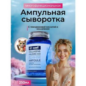 Каждый из компонентов сыворотки является мощным антивозрастным средством, что в комплексе дает потрясающий эффект. Сыворотка эффективно устраняет признаки и причины старения и является отличной профилактикой для уставшей, увядающей кожи. Нормализует уровень pH и обеспечивает стабильный гидробаланс. Поддерживает кожу в упругом, эластичном состоянии. Разглаживает морщинки. Устраняет дряблость. Позволяет забыть о тусклости и темных кругах в области глаз. Выравнивает тон, заметно отбеливает. Препятствует воспалительным процессам. Обеспечивает надежную защиту от ультрафиолета и других, негативных факторов окружающей среды. Дает возможность вновь и вновь наслаждаться свежестью и молодостью. В состав входят: Гиалуроновая кислота - пополняет собственные запасы этого компонента в тканях, образует тончайшую пленочку, пропускающую влагу внутрь и препятствующую ее испарению, наделяет кожу мягкостью, способствует ускоренному проникновению полезных веществ, противодействует негативным факторам окружающей среды. Аденозин - аминокислота, ускоряющая метаболизм кожного покрова, улучшает состояние кожного покрова, смягчает ткани, обновляет клеточный состав, способствует регенерации и росту, делает кожу упругой и противодействует старению, разглаживает морщинки, производит выравнивание тонов. Гидролизованный морской коллаген - производит омолаживание тканей и нормализует клеточную деятельность, служит дополнением к естественному коллагену организма, который начал испытывать возрастные изменения, не допускает обезвоживания, удерживает влагу в кожном покрове, предупреждая увядание. Смягчает кожу, устраняет морщинки, разглаживает рельеф, ускоряет обменные процессы, поддерживает эластичность, обеспечивает защитные функции. Ниацинамид - отбеливает и защищает от фотостарения. Сыворотка (все-в-одном) совмещают в себе свойства тоника, эмульсии и сыворотки Не содержит искусственных красителей, минерального масла, парабенов, и бензофенона.