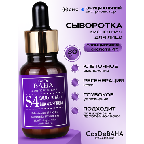 НАЙТИ ВЫГОДНЕЕ - Кислотная сыворотка для лица для проблемной кожи / корейская косметика Cos De BAHA BHA Salicylic Acid 4% Exfoliant Serum