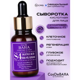 Кислотная сыворотка для проблемной кожи Cos De BAHA BHA Salicylic Acid 4% Exfoliant Serum - это огромный прорыв в уходе за проблемной кожей. Обогащенная салициловой кислотой, эта сыворотка действует на причину воспалений, устраняет прыщи и акне, антибактериальными свойствами предотвращает появление новых воспалений. Это мощное средство осветляет пигментацию и постакне, регулирует выработку меланина и повышает упругость и эластичность кожи. Оно также отшелушивает омертвевшие клетки, запускает процессы внутриклеточной регенерации и смягчает роговой слой, размягчая и растворяя пробки в фолликулах. Кроме того, сыворотка имеет обеззараживающее и противовоспалительное действие, уничтожая бактерии вызывающие воспаление внутри комедона. Она также подавляет выработку секрета потовых и сальных желез, что помогает уменьшить жирность кожи и сужает поры. Эта уникальная сыворотка также способствует улучшению защитных функций кожи, повышает ее эластичность и увлажняет. Она успокаивает и питает кожу, тонизирует и снимает воспаления и покраснения, выравнивает тон и подарит вашей коже более здоровый и свежий вид. Способ применения очень прост: нанесите сыворотку на чистую кожу лица. Ее можно использовать самостоятельно или "под крем". Она подходит для ежедневного применения и рекомендуется использовать во время вечернего ухода. При использовании утром не забудьте нанести солнцезащитный крем для защиты от вредного воздействия солнечных лучей. Неважно, нужна ли она вашей маме, сестре, любимой жене или коллеге, эта сыворотка станет лучшим подарком для всех, кто мечтает о идеальной коже без акне и воспалений. Обновите свой кожный покров и достигните безупречной кожи с кислотной сывороткой Cos De BAHA BHA Salicylic Acid 4% Exfoliant Serum