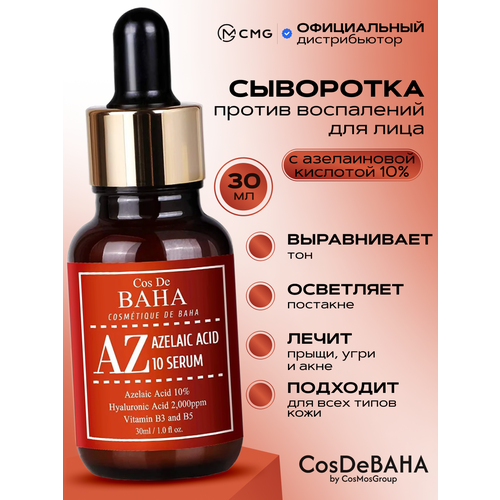 НАЙТИ ВЫГОДНЕЕ - Сыворотка для лица с азелаиновой кислотой для проблемной кожи/ корейская косметика Cos De BAHA AZ Azelaic Acid 10 Serum, 30 мл.