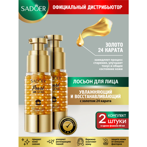 НАЙТИ ВЫГОДНЕЕ - Увлажняющий и восстанавливающий жемчужный лосьон для лица Sadoer с золотом 60 гр. х 2 шт.