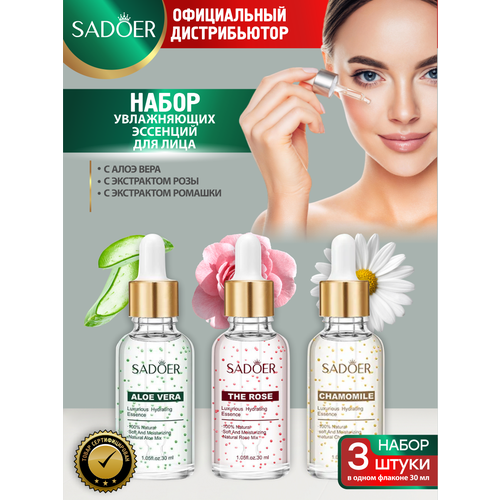 НАЙТИ ВЫГОДНЕЕ - Набор увлажняющих эссенций для лица Sadoer с алоэ вера + с экстрактом розы + с экстрактом ромашки
