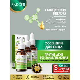 НАЙТИ ВЫГОДНЕЕ - Восстанавливающая эссенция для лица против акне Sadoer с салициловой кислотой 30 мл х 3 шт.