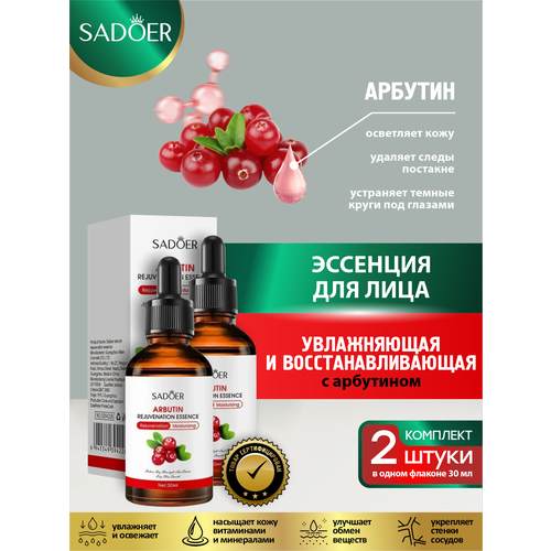 НАЙТИ ВЫГОДНЕЕ - Увлажняющая и восстанавливающая эссенция для лица Sadoer с арбутином 30 мл. х 2 шт.