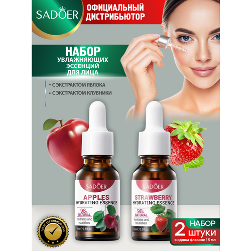 НАЙТИ ВЫГОДНЕЕ - Набор увлажняющих эссенций для лица Sadoer с экстрактом яблока 15 мл. + с экстрактом клубники 15 мл.