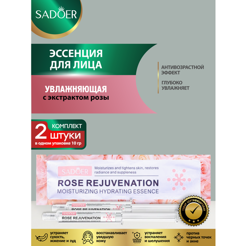 НАЙТИ ВЫГОДНЕЕ - Увлажняющая эссенция для лица Sadoer с экстрактом розы 10 гр. х 2 шт.