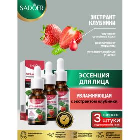 НАЙТИ ВЫГОДНЕЕ - Увлажняющая эссенция для лица Sadoer с экстрактом клубники 15 мл. х 3 шт.