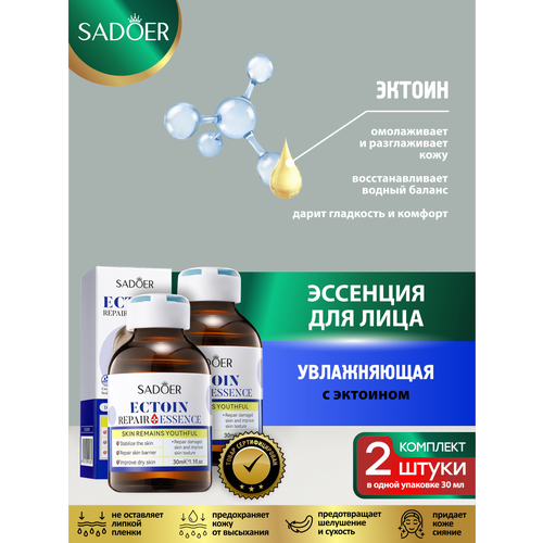 НАЙТИ ВЫГОДНЕЕ - Увлажняющая эссенция для лица Sadoer с эктоином 30 мл. х 2 шт.