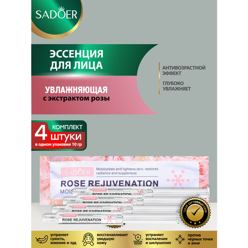 НАЙТИ ВЫГОДНЕЕ - Увлажняющая эссенция для лица Sadoer с экстрактом розы 10 гр. х 4 шт.