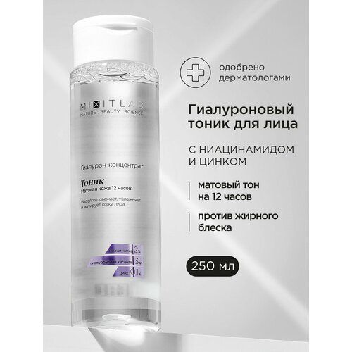 Тоник для лица MIXIT LAB Hyaluron Matte Skin Tonic - это эффективное средство для ухода за кожей лица, разработанное специально для подростков и взрослых. Объем составляет 250 мл, что делает его удобным для использования в домашних условиях.