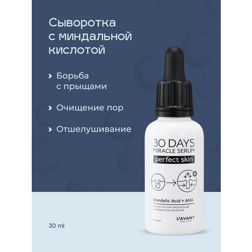 НАЙТИ ВЫГОДНЕЕ - Lavant Сыворотка для лица ночная с миндальной кислотой против акне прыщей средство для проблемной кожи, 30 мл