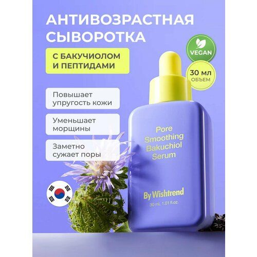 НАЙТИ ВЫГОДНЕЕ - Сыворотка антивозрастная с бакучиолом и ниацинамидом By Wishtrend Pore Smoothing Bakuchiol Serum, 30 мл