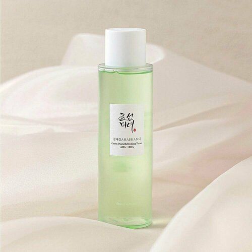 Освежающий кислотный тонер Beauty of Joseon Green Plum Refreshing Toner: AHA+BHA отшелушивает роговой слой, предотвращая закупорку пор и появление комедонов, смывает остатки загрязнений, удаляет излишки себума и омертвевших частиц кожи.