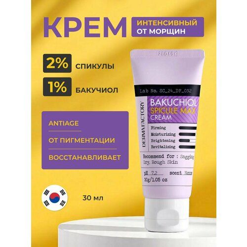 НАЙТИ ВЫГОДНЕЕ - Крем антивозрастной с 1% бакучиола и 2% спикул Derma Factory Spicule Max Cream, 30 мл