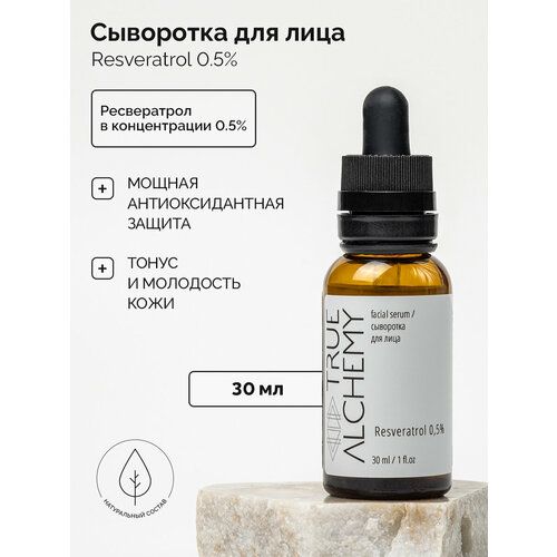 НАЙТИ ВЫГОДНЕЕ - Антивозрастная сыворотка для лица с ресвератролом Resveratrol 0,5 %, TRUE ALCHEMY, 30 мл