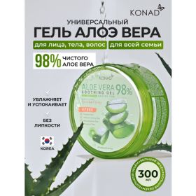 НАЙТИ ВЫГОДНЕЕ - Konad Aloe Vera 98% Sootning Gel Успокаивающий восстанавливающий увлажняющий Гель Алоэ Вера для лица и тела, 300 мл