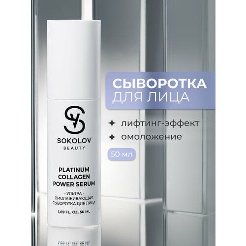 Сыворотка для лица PLATINUM COLLAGEN POWER SERUM от SOKOLOV мощное средство для ультраомоложения кожи. Обладая интенсивным увлажняющим действием, она эффективно разглаживает мелкие и глубокие морщины, укрепляет и уплотняет кожу. Сыворотка обеспечивает как мгновенный, так и пролонгированный лифтинг-эффект, а также стимулирует выработку коллагена и моделирует контуры лица. Уходовая сыворотка подходит для всех типов кожи, особенно для тех, кто замечает снижение тургора и имеет неровную текстуру или мимические морщины. Ключевыми активными компонентами косметики являются коллоидная платина, замедляющая процессы старения и блокирующая свободные радикалы, а также запатентованный комплекс пептидов Matrixyl 3000, который значительно уменьшает глубину морщин и оставляет кожу упругой. Гиалуроновая кислота насыщает клетки влагой, а экстракты сверции и снежных водорослей восстанавливают объем и тонизируют усталую кожу, придавая ей здоровый цвет. Используйте бьюти сыворотку для лица с эффектом ультраомоложения для вашего ежедневного ухода.