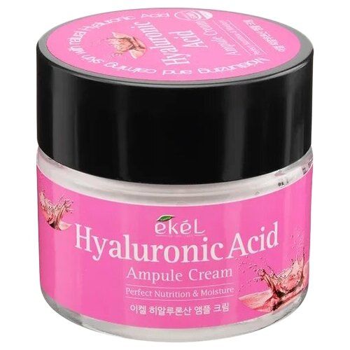 Функциональный крем двойного действия на основе гиалуроновой кислоты Ekel Hyaluronic Acid Ampule Cream не оставляет ощущения липкости и быстро впитывается. Гиалуроновая кислота в составе средства интенсивно увлажняет обезвоженную кожу, способствует выработке собственной гиалуроновой кислоты, синтезу коллагена и эластина.