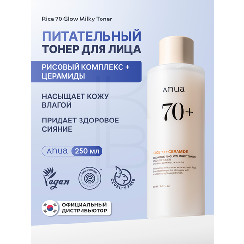 НАЙТИ ВЫГОДНЕЕ - Тонер молочный с рисовым экстрактом и керамидами | ANUA Rice 70 Glow Milky Toner 250ml