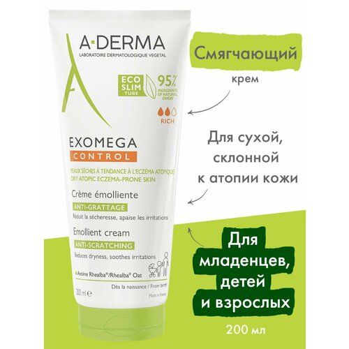 A-DERMA EXOMEGA CONTROL смягчающий крем для лица И тела - для сухой кожи, склонной к атопическому дерматиту.