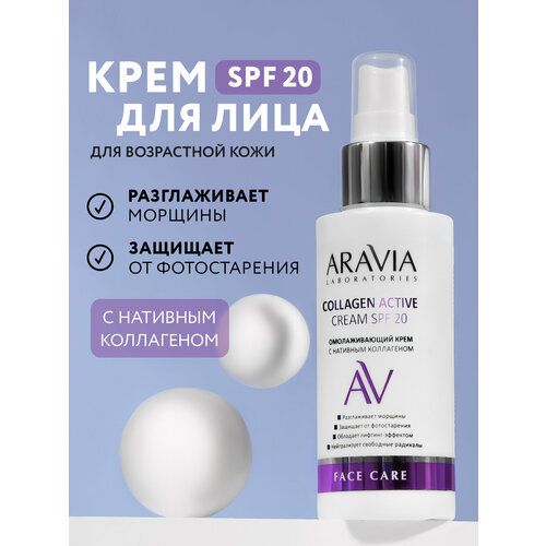 НАЙТИ ВЫГОДНЕЕ - ARAVIA Крем омолаживающий с нативным коллагеном Collagen Active Cream SPF 20, 100 мл