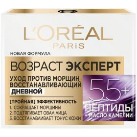 Восстанавливающий уход против морщин Возраст Эксперт 55+ создан специально для ухода за кожей после 55 лет и визуально устраняет возрастные признаки.