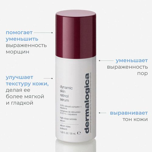 Эта сыворотка, достаточно деликатная для использования каждый вечер, содержит 3,5% Ретиноидный комплекс + Сквалан для минимизации выраженности пор, улучшения текстуры, выравнивания тона кожи и разглаживания морщин. Dynamic Skin Retinol Serum обеспечивает преимущества использования ретинола, сохраняя здоровье кожного барьера.