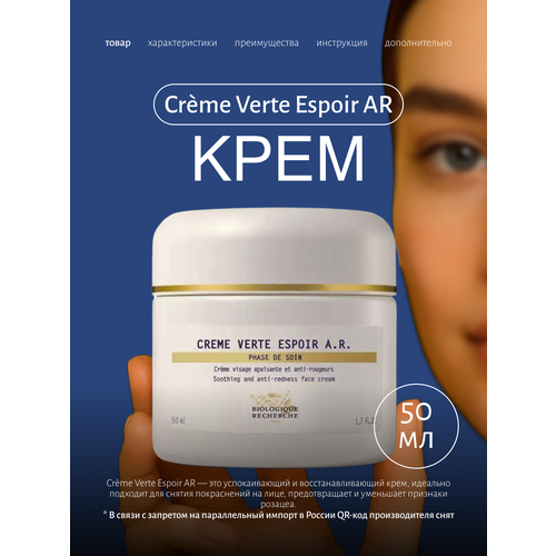 НАЙТИ ВЫГОДНЕЕ - Успокаивающий крем против покраснений на лице CREME VERTE ESPOIR AR Biologique Recherche 50мл