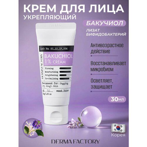 НАЙТИ ВЫГОДНЕЕ - Крем укрепляющий для лица с бакучиолом DERMA FACTORY BAKUCHIOL 1% CREAM, антивозрастной 30 г