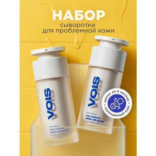 НАЙТИ ВЫГОДНЕЕ - VOIS Набор из двух сыворотк для лица от прыщей и черных точек, с ниацинамидом и цинком, противовоспалительная, 60 мл