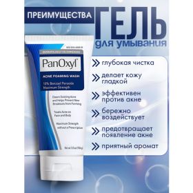Представляем Вам PanOxyl крем-пенку для ухода за кожей с перекисью бензоила 10%. Это эффективное средство для умывания, разработанное специально для борьбы с проблемами кожи, такими как акне и угри. Формула крем-пенки позволяет глубоко очищать поры, устраняя излишки жира и загрязнения, что способствует улучшению состояния кожи.