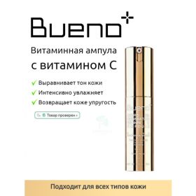 Антиоксидантная сыворотка с витамином С Bueno Hybrid 4th Generation Vitamin C Ampoule — продукт с высокой концентрацией витаминов, обладает выраженным омолаживающим действием.