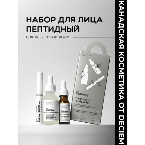 Набор уходовой косметики для лица с пептидами The Power of Peptides Set от The Ordinary предложит вам все необходимое для достижения здоровой и сияющей кожи. Этот комплексный набор включает в себя несколько высокоэффективных продуктов, которые обеспечивают глубокое увлажнение и питательные вещества, необходимыми для поддержания упругости и эластичности кожи.