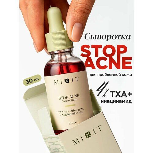 Миксит Skin Chemistry Stop Acne Face Serum – сыворотка для проблемной кожи лица с транексамовой кислотой и ниацинамидом нормализует выработку себума, сужает поры, уменьшает следы постакне. Лицо становится гладким и сияющим, выравнивается тон и микрорельеф. Наше средство – это домашний профессиональный уход за комбинированной, жирной и проблемной кожей. Ниацинамид для лица нивелирует шелушения, сокращает высыпания. Сыворотка с ниацинамидом и транексамовой кислотой наполняет лицо здоровым сиянием, работает с несовершенствами кожи. Сыворотка от прыщей с альфа-арбутином снижает появление темных пятен и улучшает общий тон лица. Сыворотка для лица увлажняющая с соком листьев алоэ вера увлажняет, успокаивает и обновляет кожный покров.