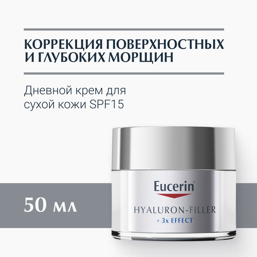 НАЙТИ ВЫГОДНЕЕ - Дневной антивозрастной крем Eucerin Hyaluron-Filler, для ухода за сухой чувствительной кожей SPF 15, 50 мл