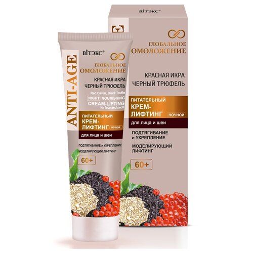 НАЙТИ ВЫГОДНЕЕ - Крем-лифтинг Витэкс Глобальное Омоложение ночной для лица и шеи 60+ 50 мл 50 г 1 шт. 1 шт. тюбик
