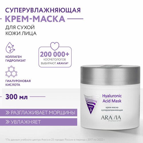 НАЙТИ ВЫГОДНЕЕ - ARAVIA Professional Hyaluronic Acid Mask Крем-маска супер увлажняющая, 100 г, 300 мл, 300 мл