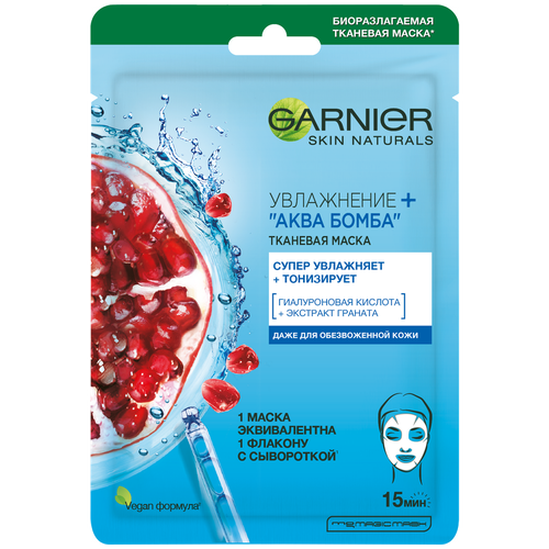 НАЙТИ ВЫГОДНЕЕ - GARNIER тканевая маска Увлажнение + Аква Бомба, 28 г, 1 мл, 1 мл