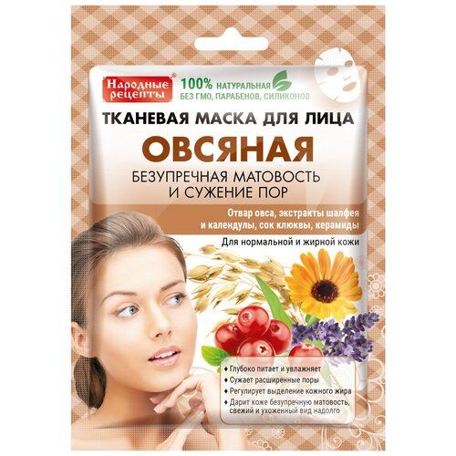 Натуральная тканевая маска на основе отвара овса. Маска мгновенно матирует кожу и дарит ей свежий и здоровый вид.