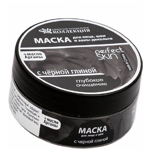 НАЙТИ ВЫГОДНЕЕ - Крымская Натуральная Коллекция маска для лица, шеи и зоны декольте Perfect Skin с черной глиной + масло арганы Глубокой очищение, 150 г, 150 мл, 150 мл