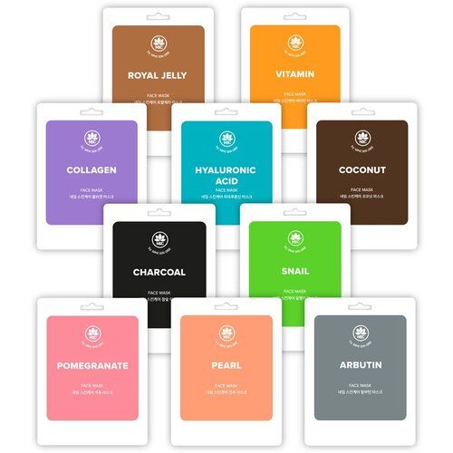 Ассорти набор тканевых масок для лица: маска HYALURONIC ACID: Гиалуроновая кислота, входящая в состав, формирует на поверхности кожи непрерывную тонкую плёнку, которая сохраняет естественную влажность кожи. Маска SNAIL: Тканевая маска с уникальной эмульсией на основе натурального муцина улитки. Маска с экстрактом муцина улитки мгновенно омолаживает и восстанавливает кожу, обладает ярко выраженными антиоксидантными и регенерирующими свойствами. маска COLLAGEN: Отлично повышает эластичность кожи, интенсивно увлажняет, выравнивает рельеф и разглаживает морщины. Оказывает быстрый и стойкий лифтинг-эффект. Маска ALOE - 2 шт: Оказывает заживляющие, бактерицидное и тонизирующее действие. Активно стимулирует обменные процессы кожи, повышает её эластичность. Подходит для чувствительной кожи. Специальные инновационные технологии производства позволили сделать идеальный анатомический крой маски максимально повторяющий контур лица. А мягкий материал, изготовленный по новейшей технологии принесет удовольствие при использовании даже самой чувствительной кожи. Маски изготовлены из натуральных экстрактов , в состав входят около 20 обязательных аминокислот и минералов, направленных на то, чтобы сохранить вашу кожу увлажненной и упругой в течении длительного времени.